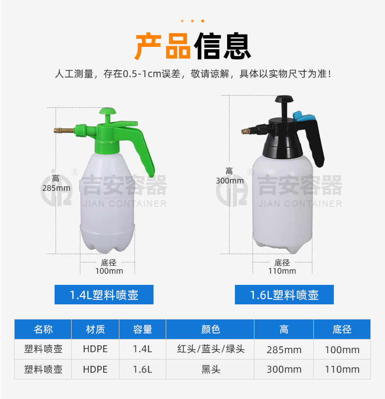 • 產(chǎn)品名稱:1.4/1.6L氣壓噴壺(R126)
